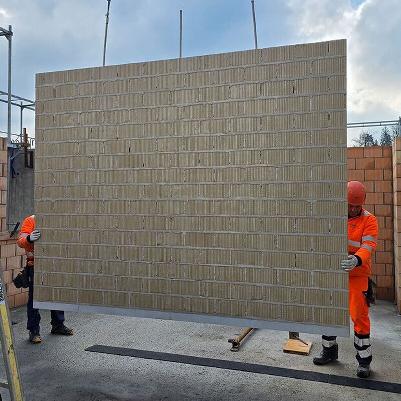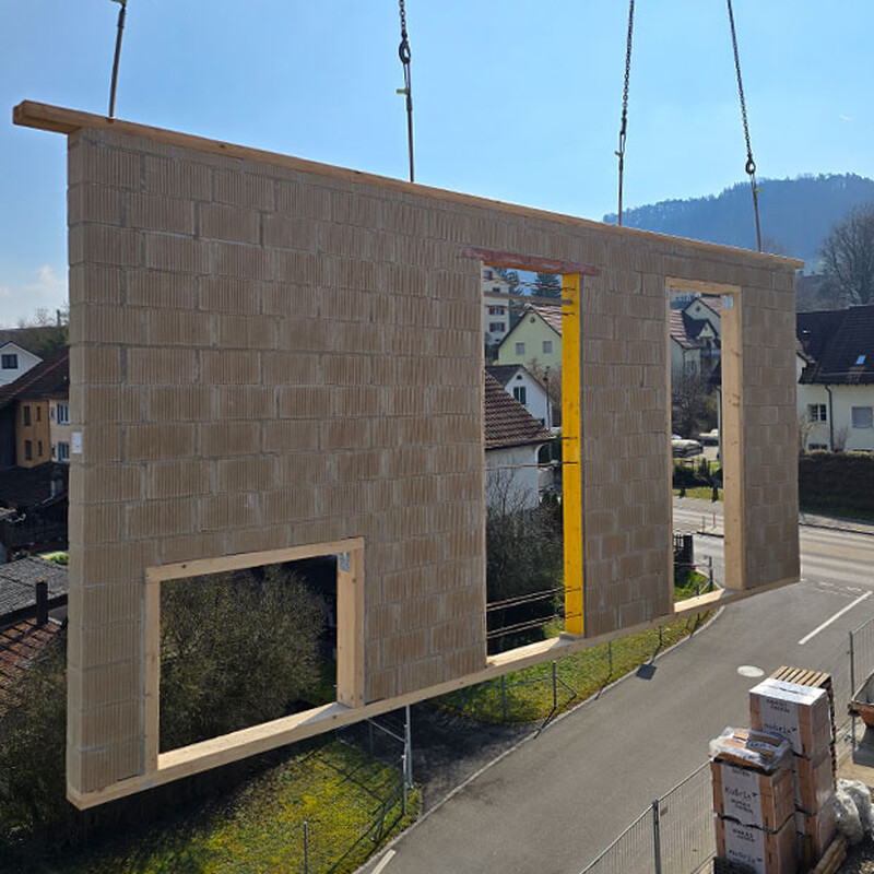 - Leistungen: Lehmsteine von Kubrix AG und Elementplanung sowie Herstellung der vorfabrizierten Lehmstein-Elemente durch Keller Systeme AG
